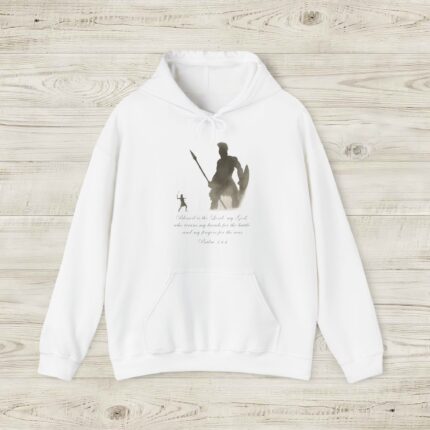 ‘Blessed is the Lord, my God, who trains my hands for the battle and my fingers for the war.’ – Psalm 144. This modern and minimalistic Christian Art depicts David and Goliath.