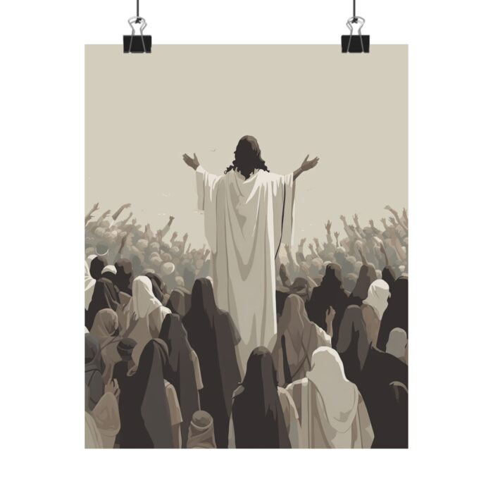 Bring the inspiring biblical story of ‘Jesus feeds the 5000’ into your home with this Christian art print.ย This high-quality Christian art print features a design of the miraculous event, with Jesus providing nourishment for the entire crowd with just five loaves of bread and two fish. This is the only miracleโaside from the resurrectionโrecorded in all four gospels (Matthew 14:13โ21; Mark 6:31โ44; Luke 9:12โ17; John 6:1โ14).