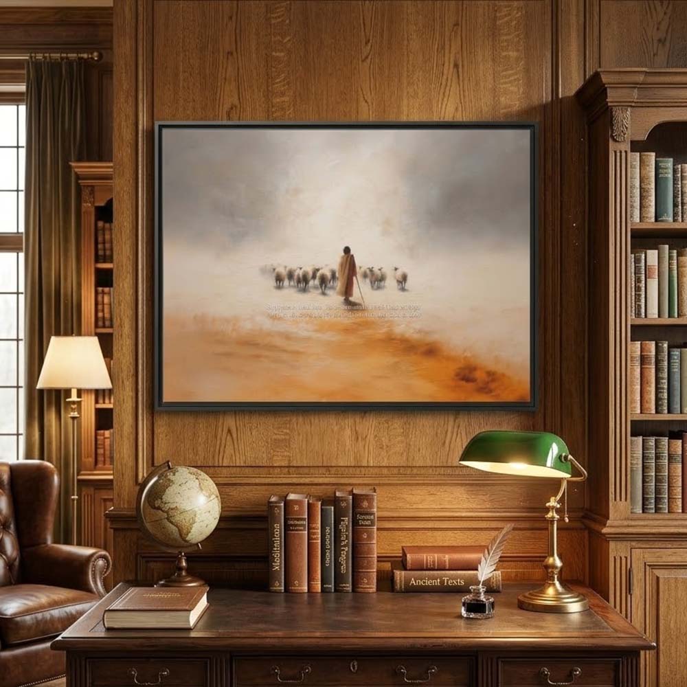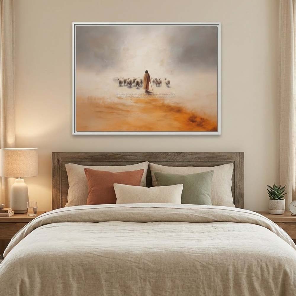 Embrace the powerful message of unconditional love with this Jesus Leaves The 99 Canvas from Magic Tree Prints. This beautiful Premium Framed Canvas illustrates the Parable of the Lost Sheep, depicting the Good Shepherd’s devotion to the one lost soul (Matthew 18:12-14). Designed in a minimalist style with a striking oil painting effect, this artwork serves as a profound reminder that you are never too far gone for Christ’s redeeming love.