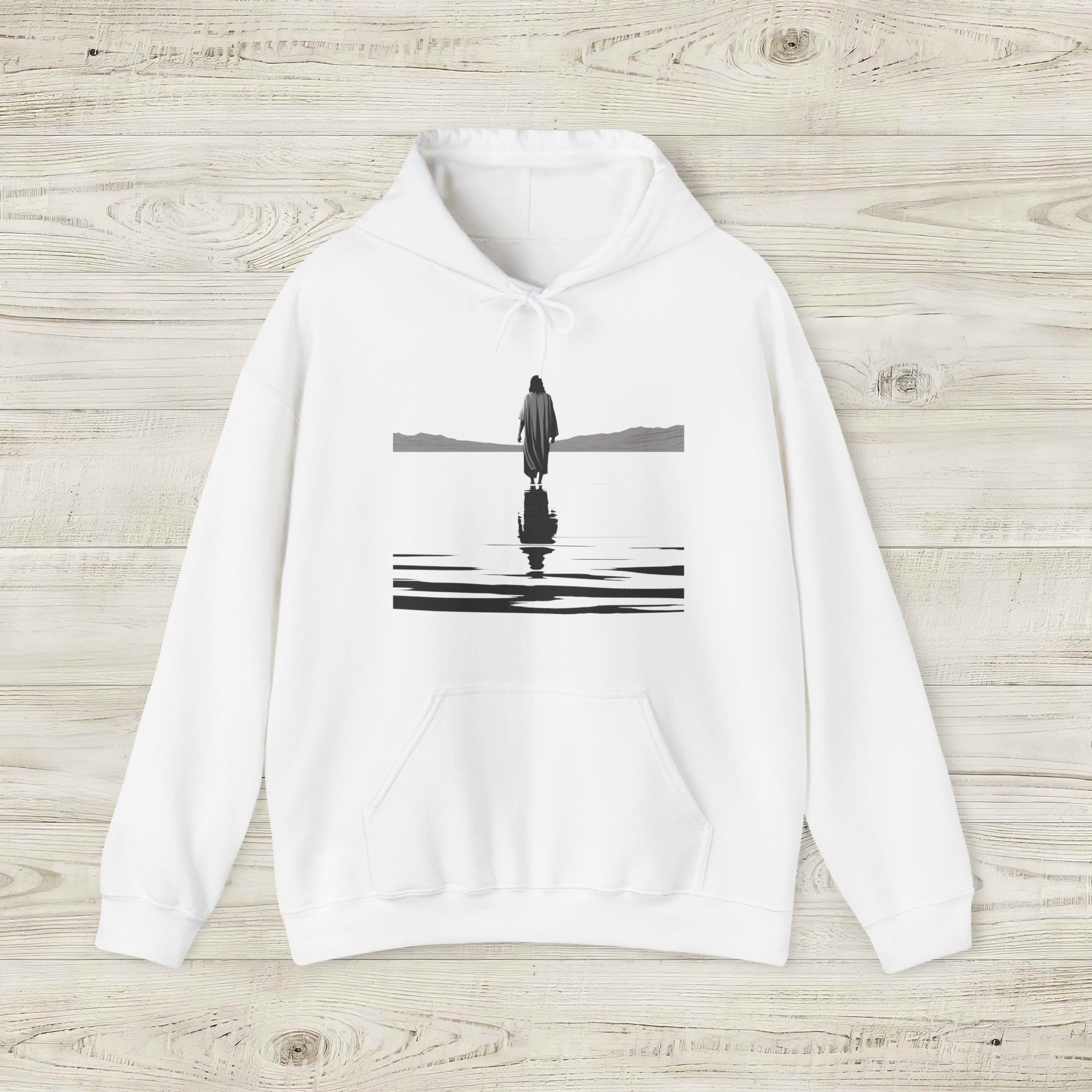The minimalist and modern design showcases the awe-inspiring event when Jesus defies the laws of nature, calming the storm and reaching out to his disciples.