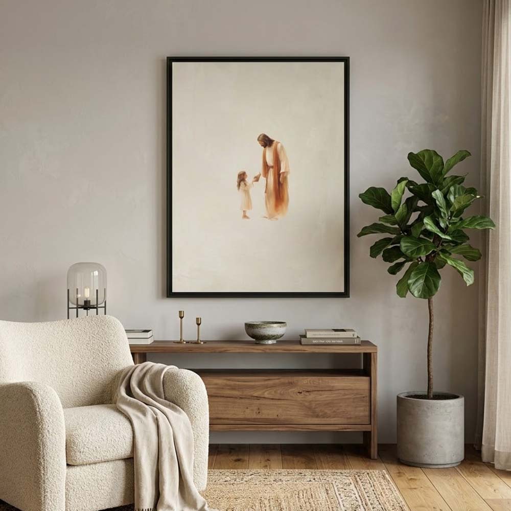 Capture the feeling of absolute love and security with this Jesus with Girl Premium Paper Print from Magic Tree Prints. This uniquely designed watercolor illustration shows Jesus comforting a little girl, symbolizing His boundless love and protection for all of us. This piece reminds viewers to approach God with simple reliance and offers a powerful visual of unconditional love. It’s the perfect, heart-melting addition to a Christian nursery, child’s bedroom, or family living space. Our high-quality print is produced on premium, museum-grade archival paper for beautiful detail and lasting color, making it an ideal Baptism or Godchild Gift