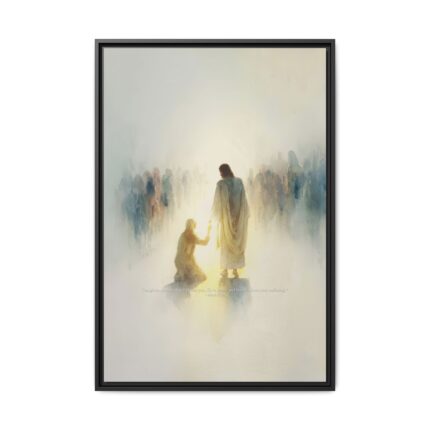 Jesus Heals the Bleeding Woman Framed Christian Canvas Print