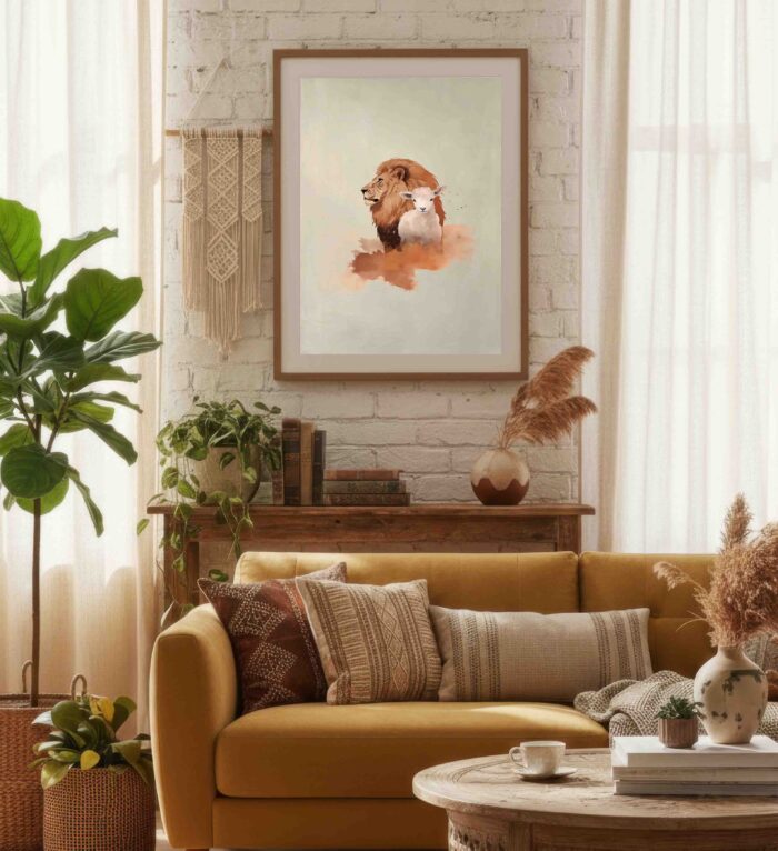 This profoundly symbolic The Lion and The Lamb Premium Paper Print from Magic Tree Prints beautifully illustrates the duality of Christ—majestic as the Lion of Judah yet innocent as the Lamb of God (Revelation 5:5). This uniquely designed watercolor artwork captures the power and gentleness of Jesus, making it a source of peace and strength. Our high-quality print is produced on premium, museum-grade archival paper for vibrant colors and lasting detail. Perfect for your office, living room, or study, this print is an emotionally resonant piece of Christian religious wall decor and a truly meaningful faith gift.